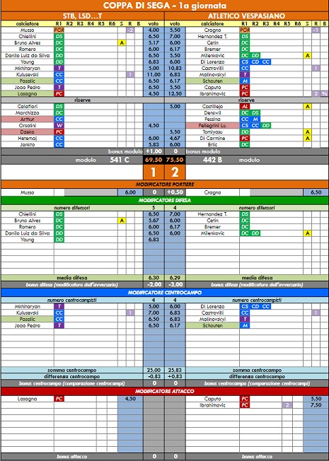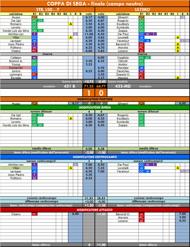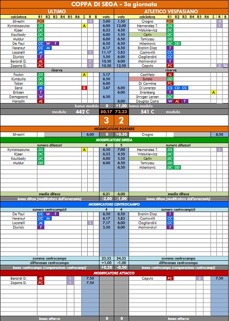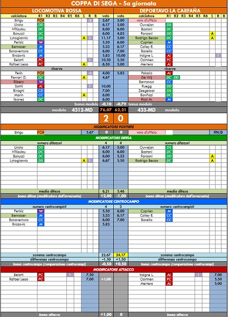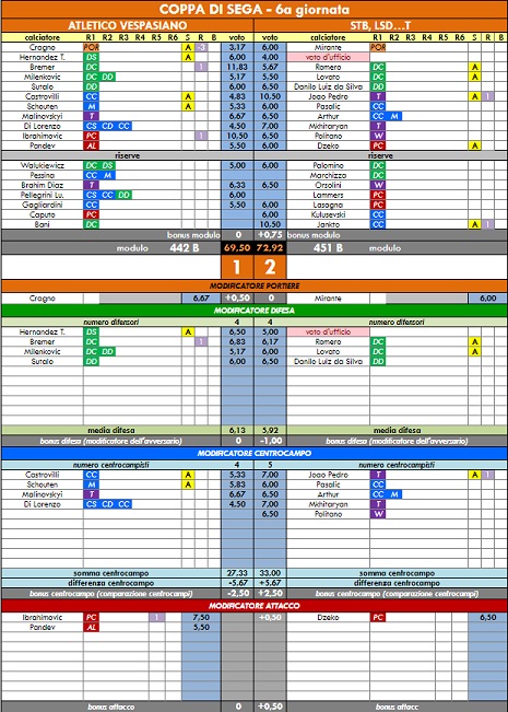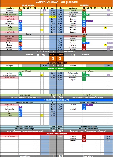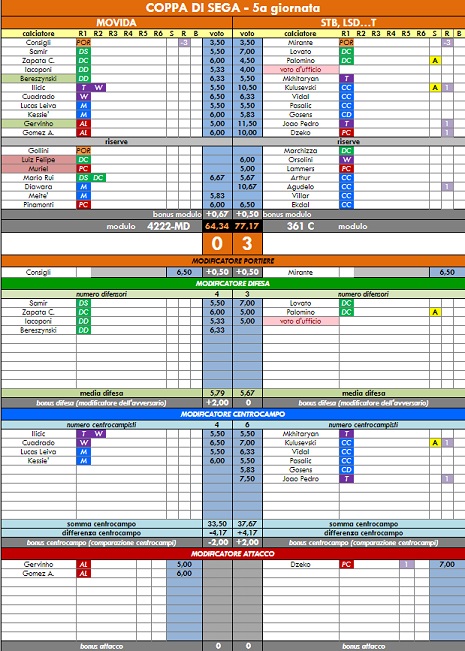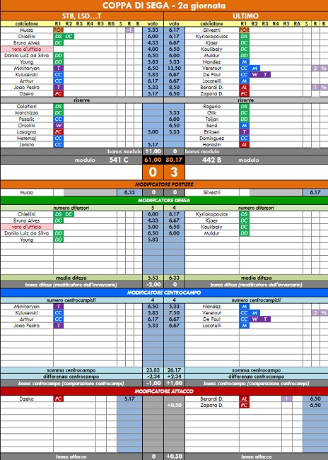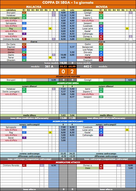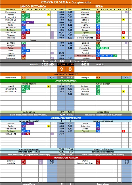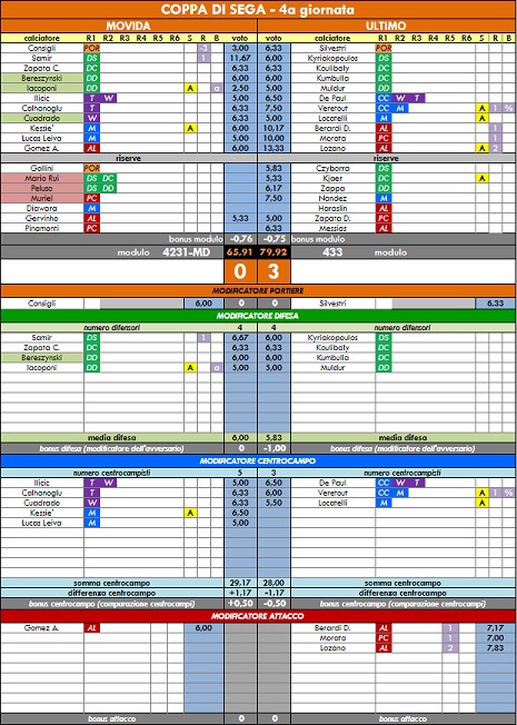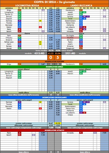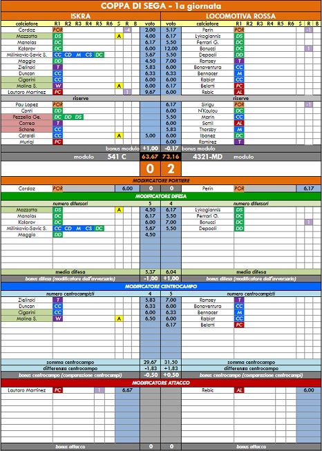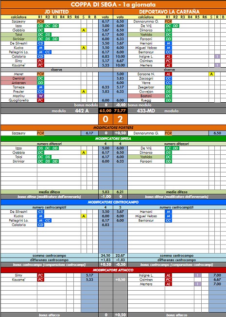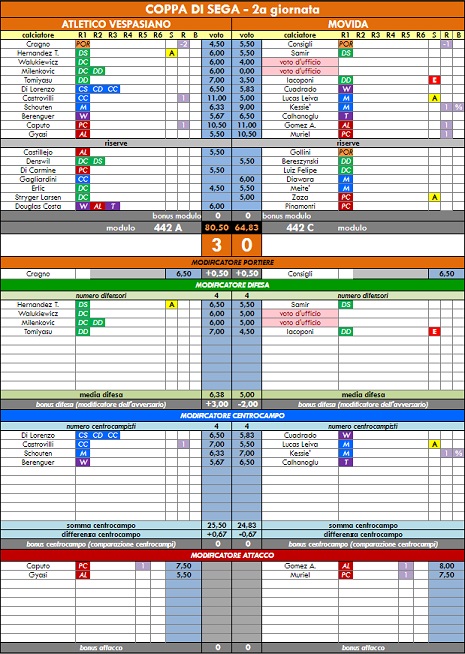 punteggi coppa di sega - 54° anno |