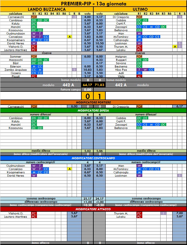 punteggi premier-pip - anno 63 | ||||||||||||||||||
