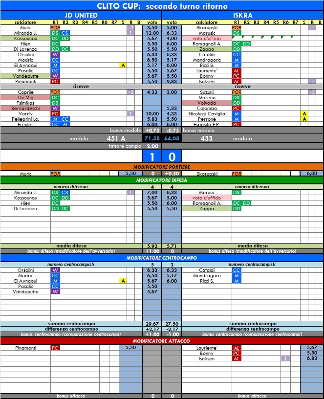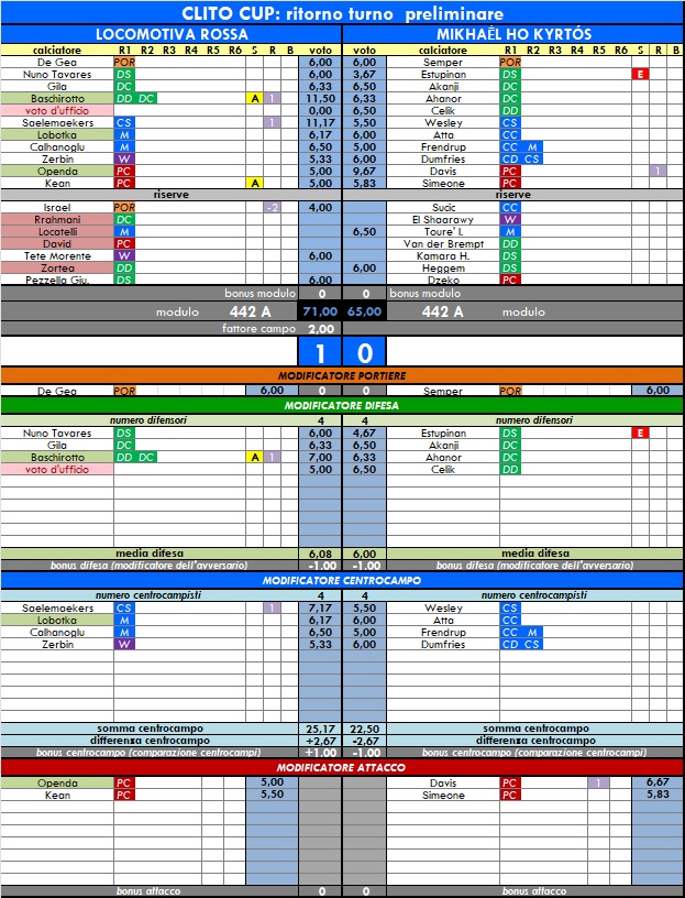 punteggi clito cup - anno 65