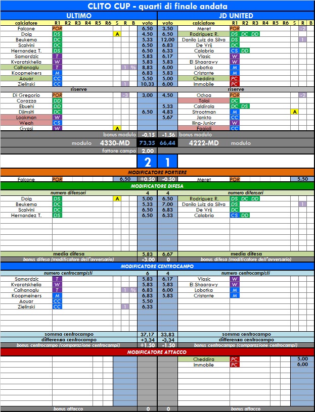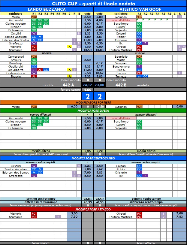 QUARTI DI FINALE ANDATA