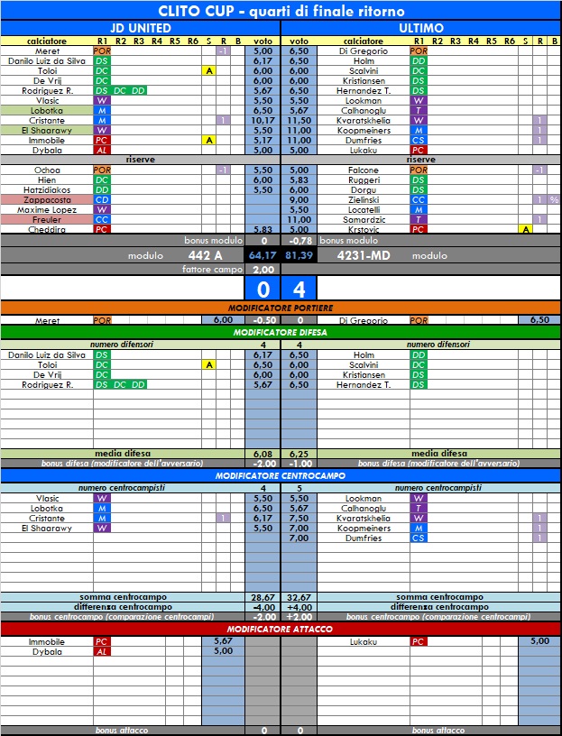 QUARTI DI FINALE RITORNO